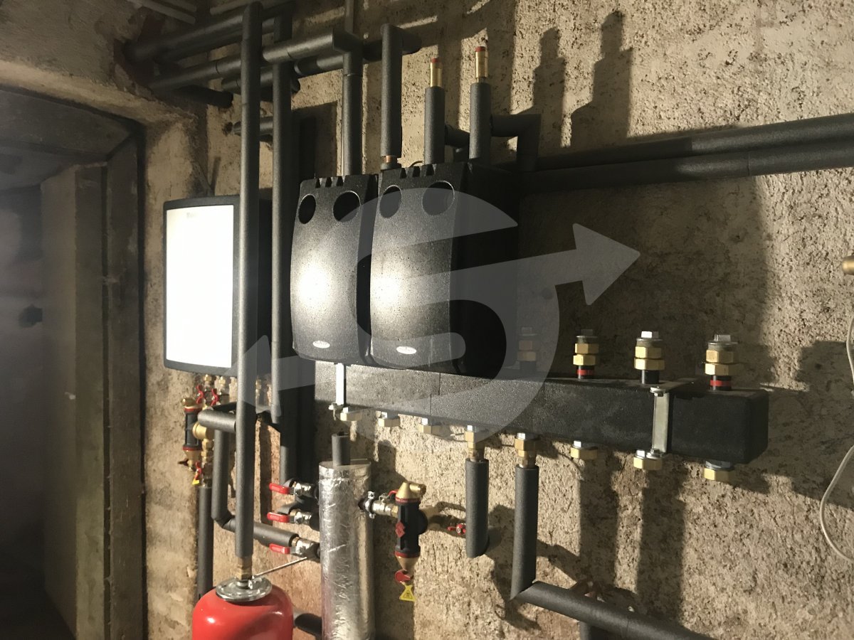 Původně byl ve starším rodinném domě instalován automatický kotel na uhlí. V domě je několik bytů a bylo obtížné zajistit obsluhu kotle. Majitel si také přál čistý provoz nového zdroje tepla. Nové tepelné čerpadlo o výkonu 15 kW je nyní zdrojem tepla pro ohřev teplé vody, pro vytápění a pro ohřev bazénu. Technické zázemí pro vnitřní vybavení tepelného čerpadla je v bývalé kotelně. Je zde umístěn i nový kombinovaný zásobník vhodný pro budoucí napojení solárního a fotovoltaického systému. Řídící systém ovládá několik topných okruhů, které si mohou samostatně nastavovat obyvatelé jednotlivých bytů.